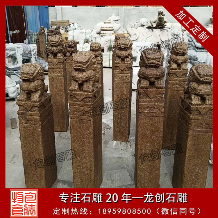 石雕拴馬樁樣式齊全、規格不一,常見的石雕拴馬樁都是方20cm的柱子,高度在1.5-2.0米之間,其最主要的不同便體現在它最上面的柱頭上。石雕拴馬樁的柱頭雕刻樣式很多,有雕刻獅子的、雕刻麒麟的還有雕刻十二生肖的等等。根據其這一特性人們還賦予它不同的名字,像“獅子拴馬樁”、“生肖拴馬樁”等等。