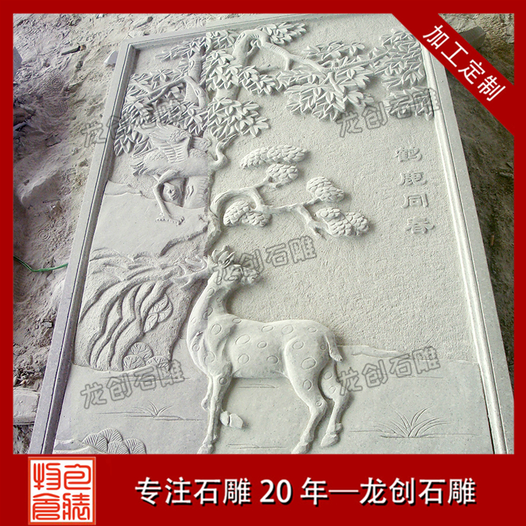 我們平時看到的浮雕有很多很多,有些是雕刻人物的,有些是雕刻動物的,有些是雕刻佛像的,而有些是雕刻花草的等等,有些時候浮雕旁邊會有寫著幾個字,就是浮雕的名字,其實這就是有典故的浮雕。浮雕的典故大都是有吉祥意義或者歷史記錄的人和事,比如我們經??吹降挠械涔矢〉裼兴生Q延年、鹿竹同春、花開富貴、馬到成功、雙龍戲珠等等。接下來讓我們一飽眼福。1、松鶴延年