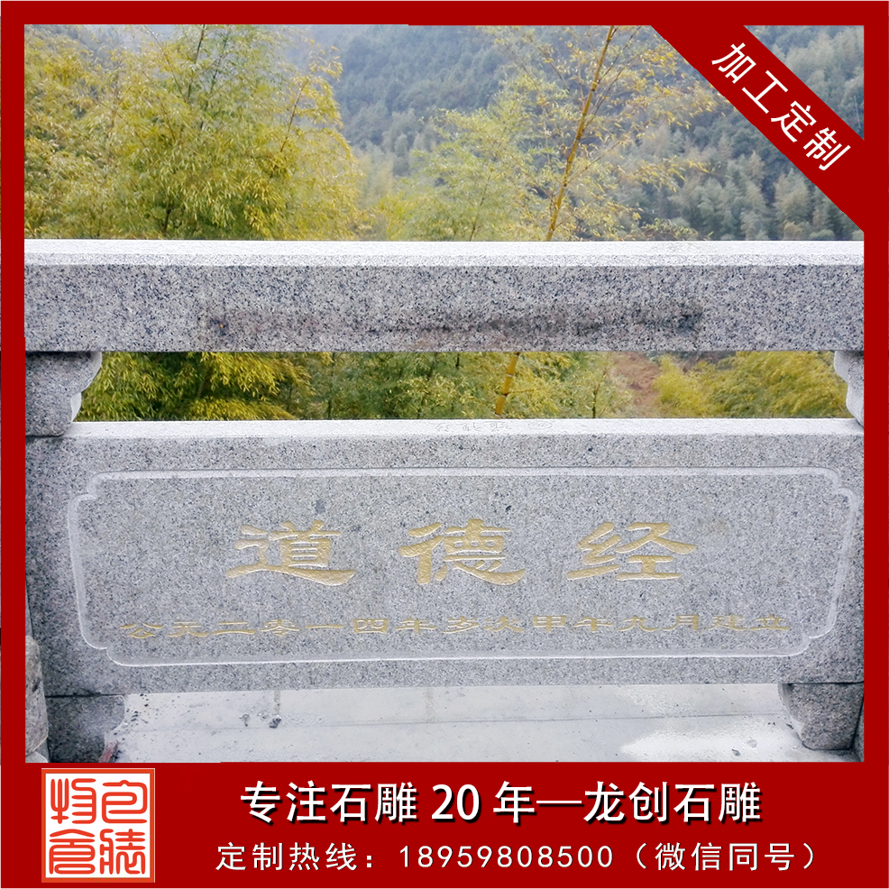 為了更好的與二殿祭拜“馬氏三仙”的習(xí)俗吻合,龍創(chuàng)石雕公司特別為其定制了道德經(jīng)的石雕欄桿,將道德經(jīng)經(jīng)文刻于欄板上。讓前來游玩的游客除了能夠賞到美景,也能夠更好的了解到當(dāng)?shù)亓?xí)俗。