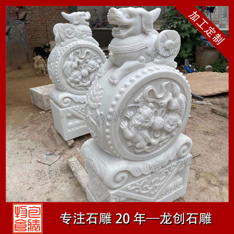抱鼓石是作為承托和穩定門板門軸、加固或安裝門檻的一個構件,有利于防止門板受外力晃動,大大增強門框的穩定性,起到聯系門檻的作用。另經枕石墊高后還可以防水防潮。外部抱鼓石主要是承擔著大門板的平衡重功能,以其前部的重量來平衡門板轉動時的重力。