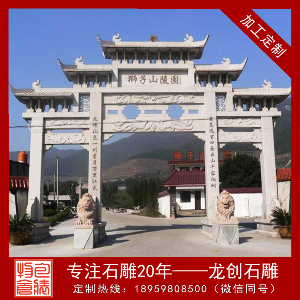 石雕石牌坊定制價格中了中國古建筑的較有特征的構件,設計尺寸隨著擺放地方的不同也有所不同,有的地方適合擺放總寬6.0米、7.0米、8.0米、9.0米、10.0米、12.0米、13.0米、16.0米、20.0米、28.0米等等,所以說牌坊設計尺寸要根據地方的不同來設計,找龍創石雕這種專業的石雕牌坊雕刻廠家會比較有保障些。