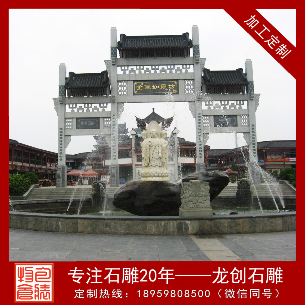石牌坊雕刻制作優先考慮到氣勢體現的同時,細節也是同樣關注不可忽略。細疏密對比的細節決定成功,有了氣勢就必須得有審美。觀察身邊的石牌坊都不會忽略牌坊石柱上雕刻著的字體和一些鐫刻的圖案。有些表達了英雄氣魄,有些透出低吟祝福,還有些細說歷史。石牌坊制作越來越精尖,越來越細致。福建惠安是著名的石牌坊雕刻之鄉。石牌坊哪家好,就選石牌坊雕刻廠家龍創石雕。