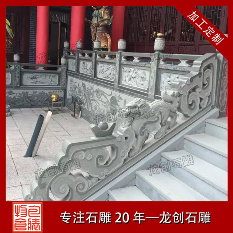 3.穩定牢固:石雕護欄采用天然石材制作,質地堅硬,結構穩定,能夠承受較大的壓力和沖擊,確保使用過程中的安全性和穩定性。