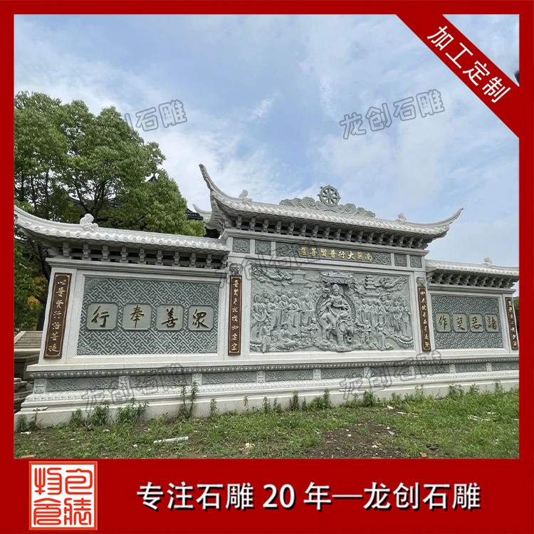 中式石雕影壁墻的制作工藝非常講究,涉及到石材的選擇、雕刻技巧、涂裝等多方面。選用質地堅硬、紋理美觀的石材,以及具備高超技藝和豐富經驗的雕刻師傅,才能制作出高質量的石雕照壁。石雕照壁適用于各種場合,如寺廟景區、宗祠、餐廳等,既可以用來分割空間、增加私密性,也可以作為墻面的點綴,提升整體美感。同時,它還可以展示主人的品味和文化修養,彰顯家族的精神風貌。