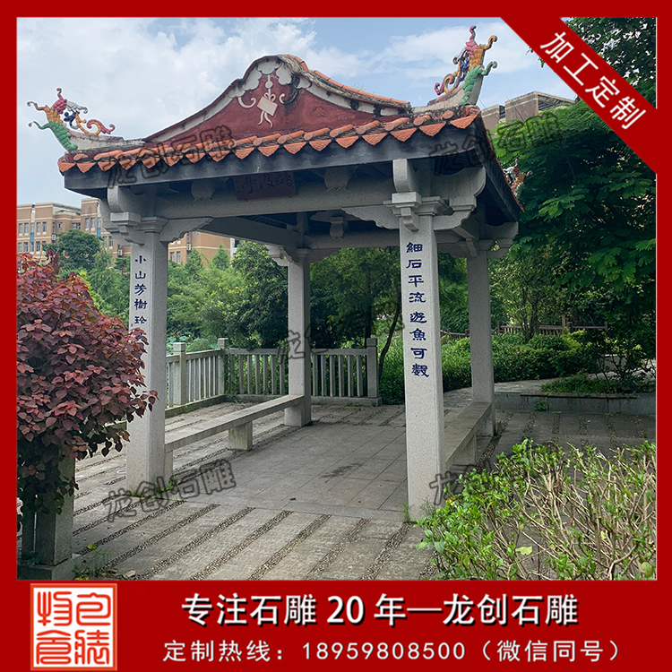 3、惠安縣龍創(chuàng)石雕工藝有限公司是一家石雕涼亭生產(chǎn)廠家,公司雕刻生產(chǎn)各種石雕制品和定做石雕涼亭,品質(zhì)有保證,款式新穎,樣式齊全,物美價(jià)廉。歡迎來電咨詢。